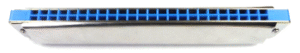 As the above photo shows, the tremolo has more holes than the standard 10 hole harmonica familiar to most Westerners. In Asia there are two main tremolo types, the 24 hole, used in China, the 21 hole, used in Japan and elsewhere. The instruments are similar and easily interchanged. The lessons on this site work for both the 21 and 24 hole tremolo.