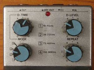 Finally, this is how it sounds with a full delay, that is, with the mode switch set to 3. With this setup, the short delay is around 150 msec, the long delay is around 300 msec.