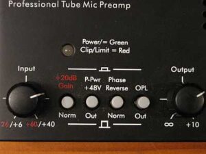 This photo show the preamp setting. None of the buttons are pressed. The input is set fairly high. I then adjust the output control to give the correct sound level