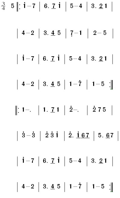 Listen to the tune a few times, while following the score. Notice the first note, a 5, which comes in on the second beat of the lead in bar, after which the tune starts.